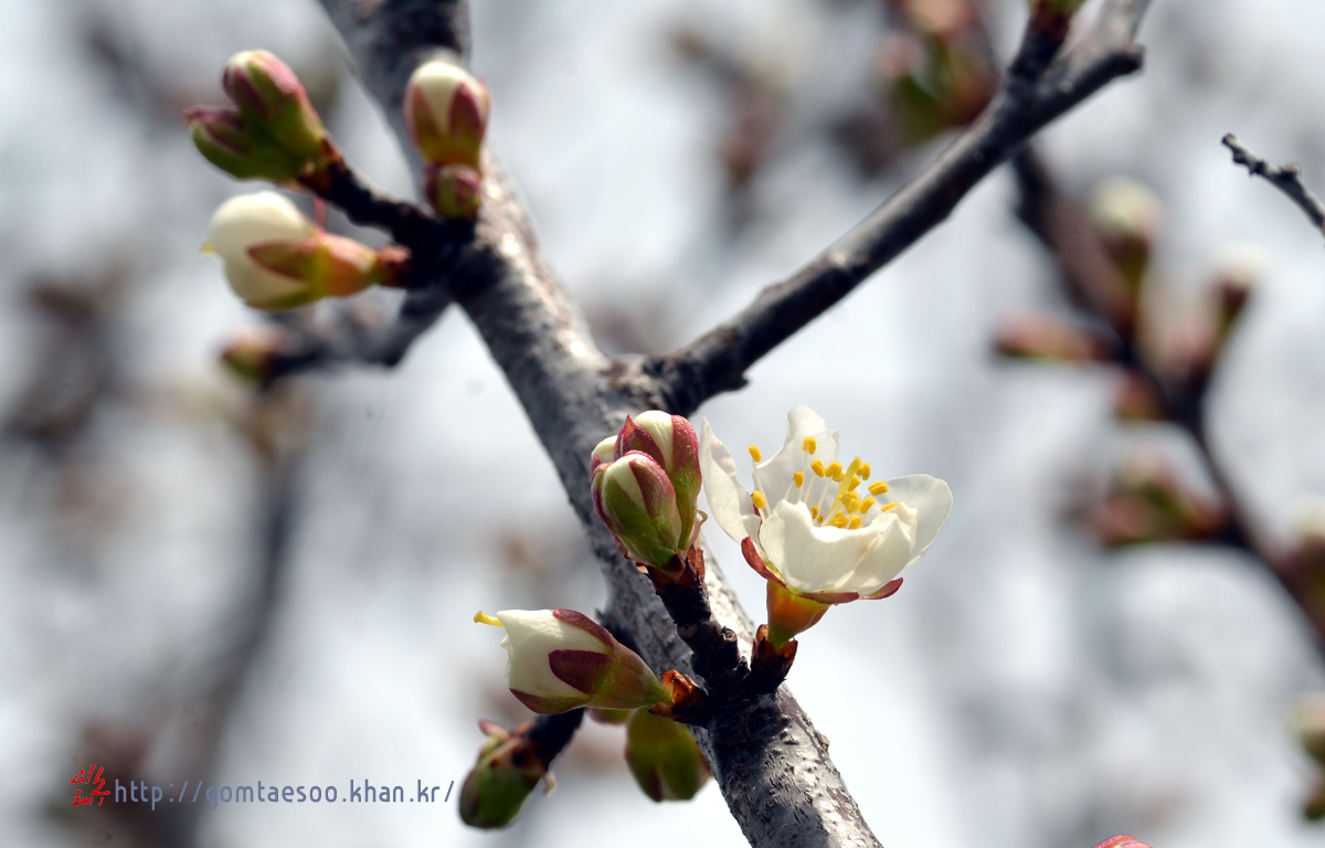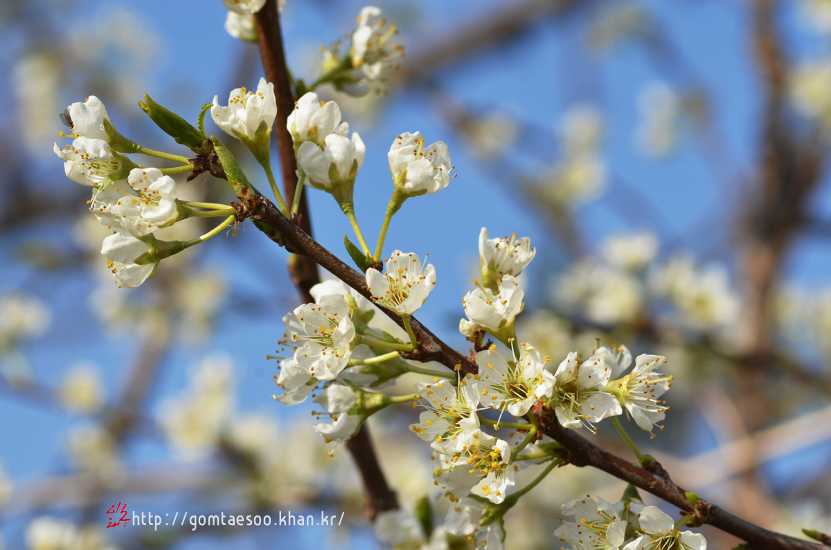 메마른 듯 보이던 살구나무에서 하얀 꽃이 피었다.