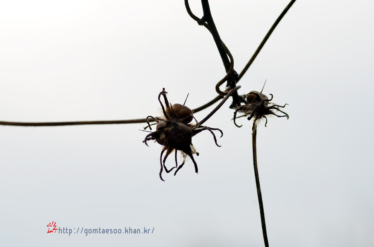 마른 나팔꽃 씨앗은 땅에 내려앉을 채비를 마쳤다.