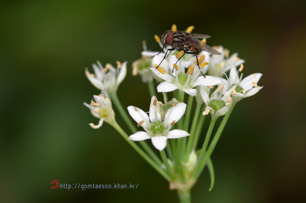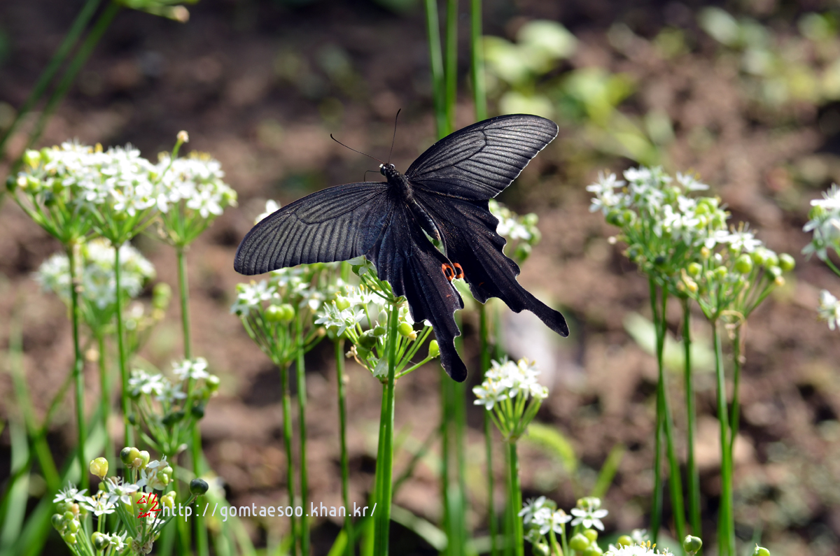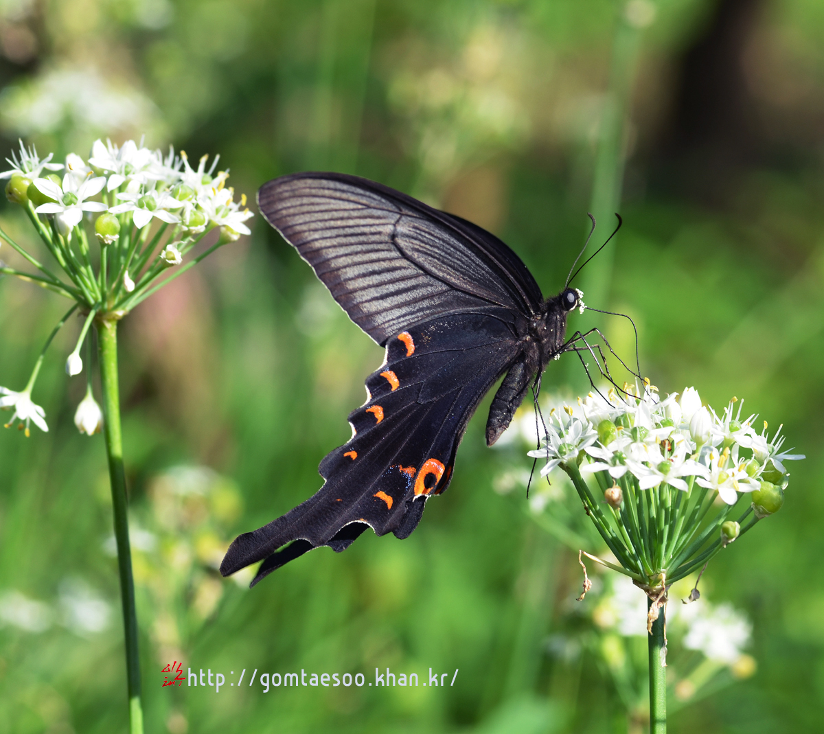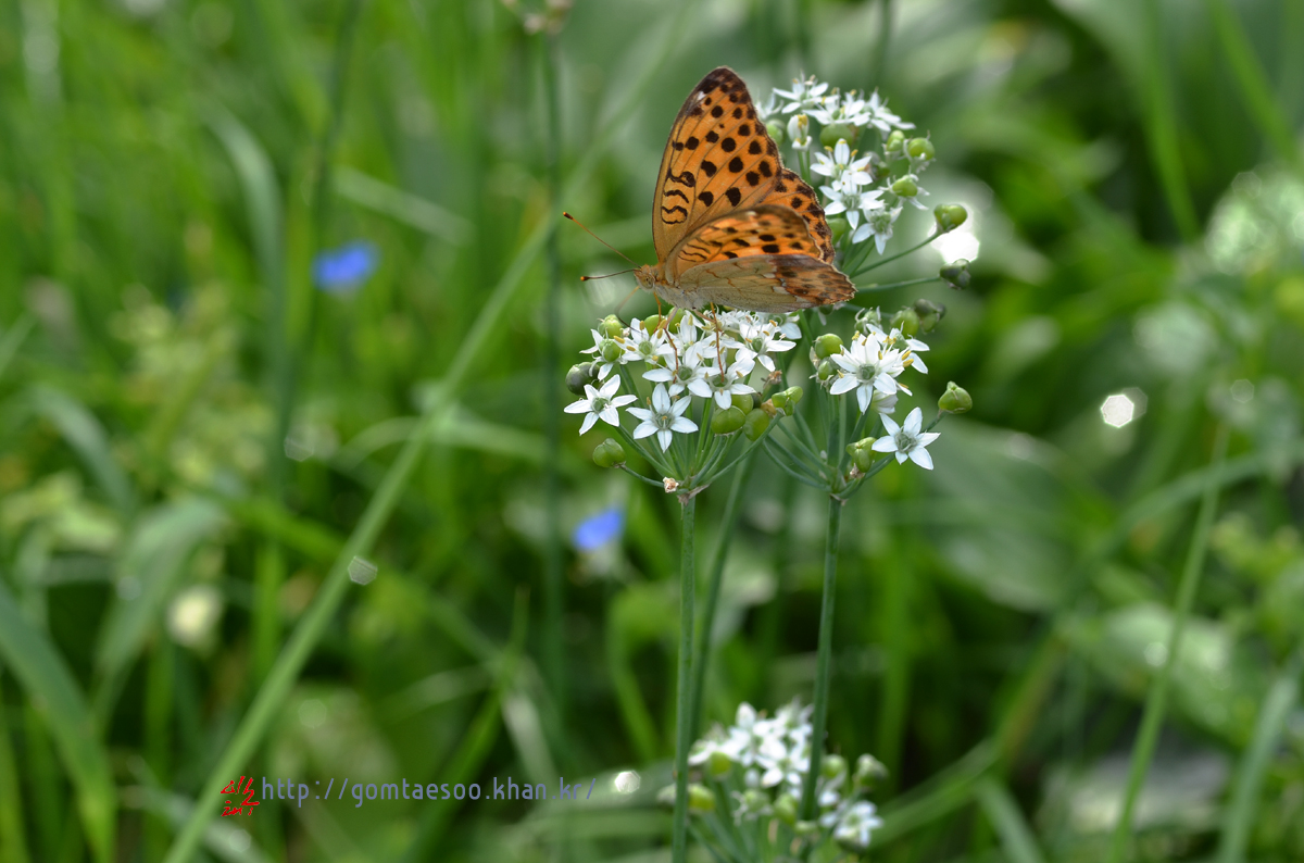 씨앗을 맺으며 핀 부추 꽃은 긴꼬리제비나비, 큰흰줄표범나비를 부른다.