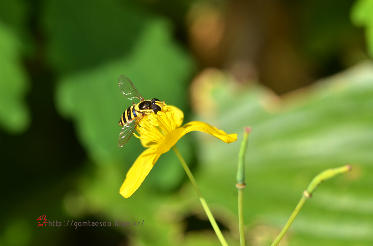 꼬마꽃등에는 애기똥풀 꽃을 찾고