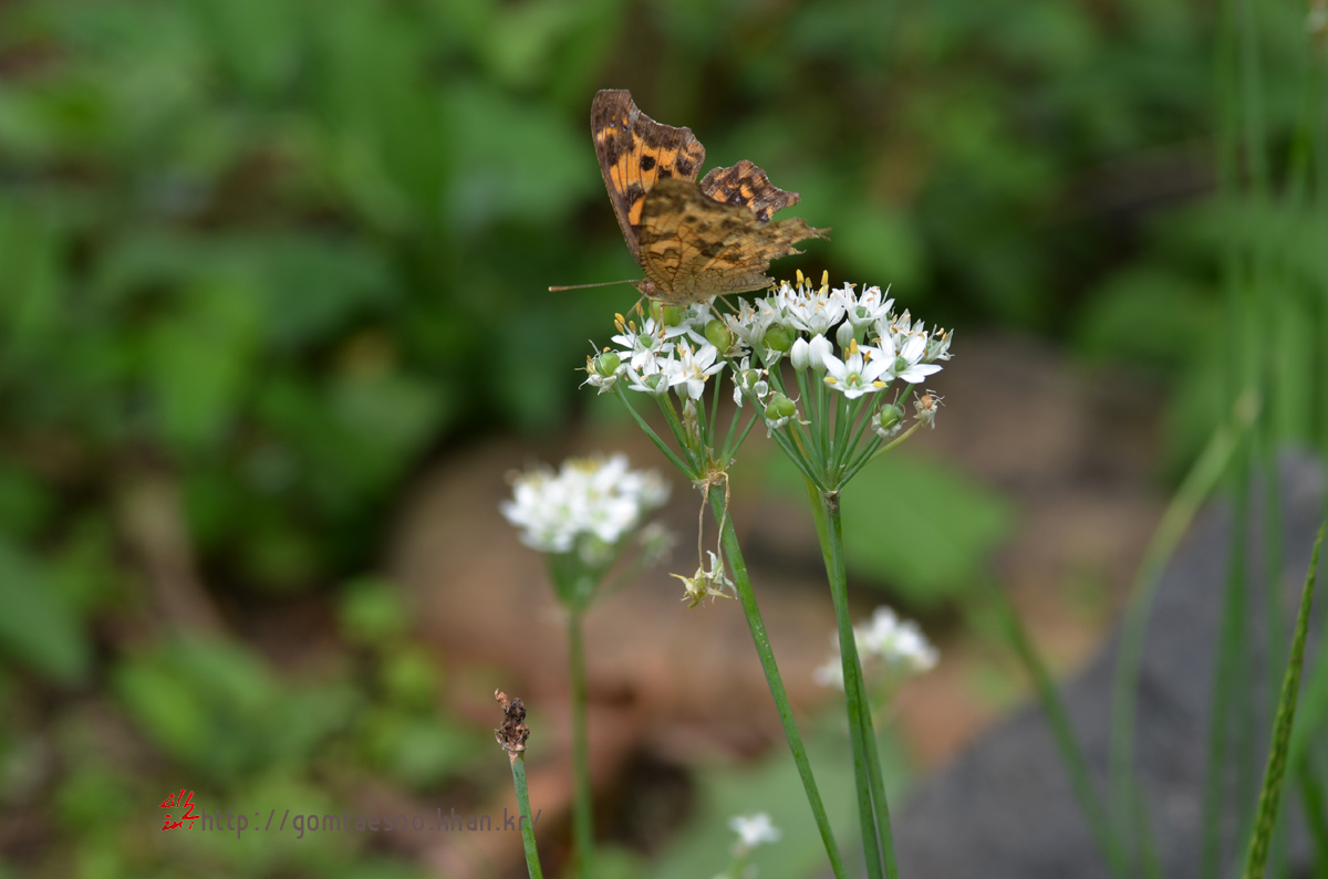 잠깐 비가 멎은 사이 네발나비가 날아든다.