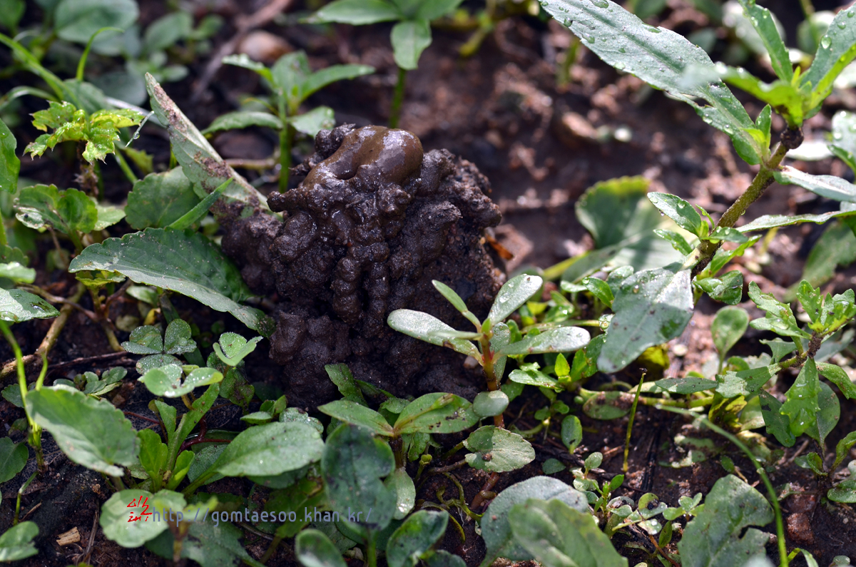 마당에 핀 작은 꽃이, 바로 똥을 누고 간 지렁이가 살아 있어 고맙다.