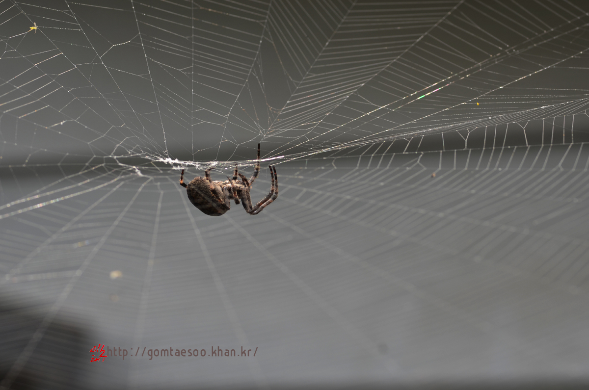 산왕거미는 자리를 옮겨 그물을 쳤다.