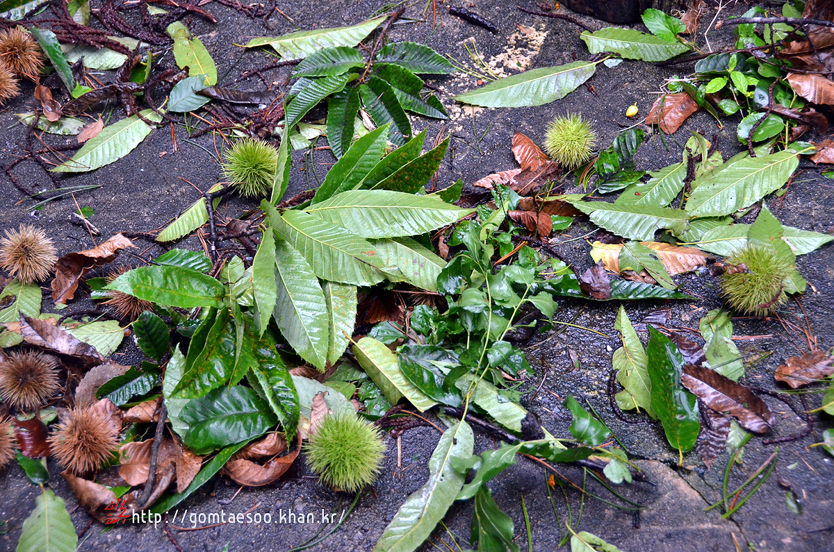 아직 여물지 않은 밤송이가 후드득 떨어졌다.