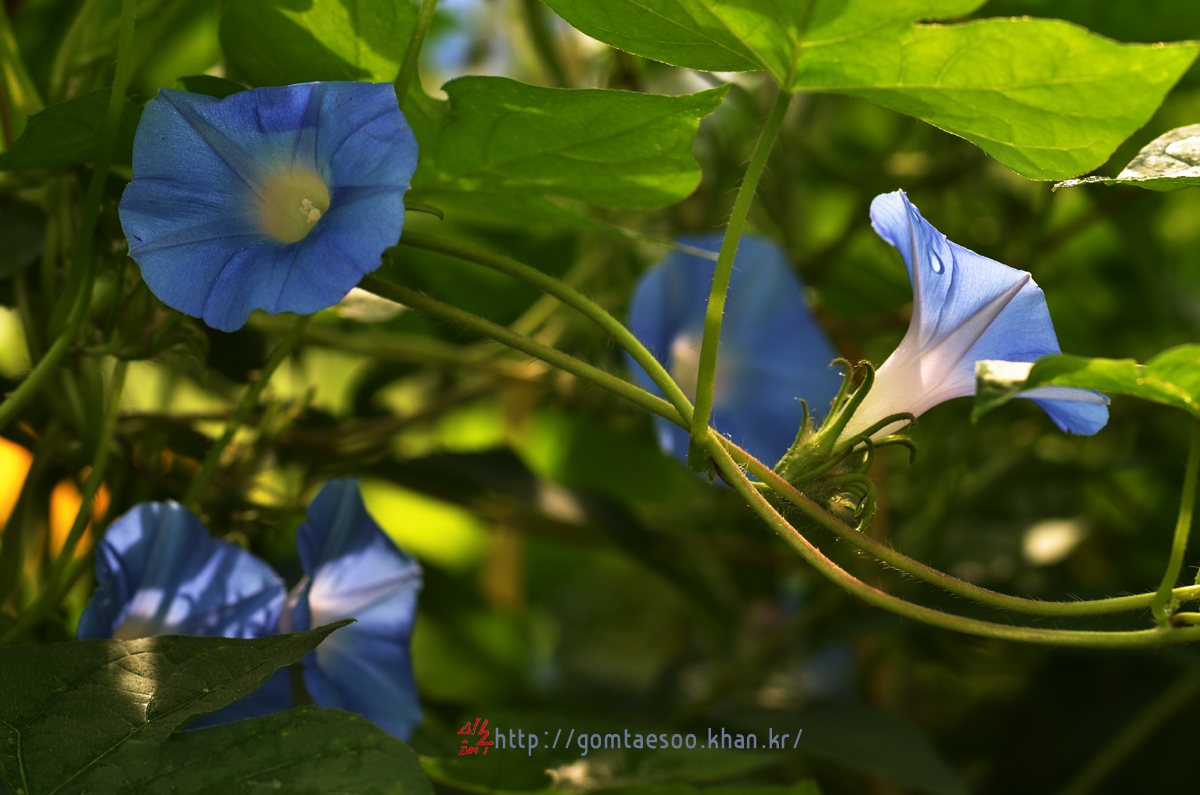 맑은 남색 나팔꽃이 피고