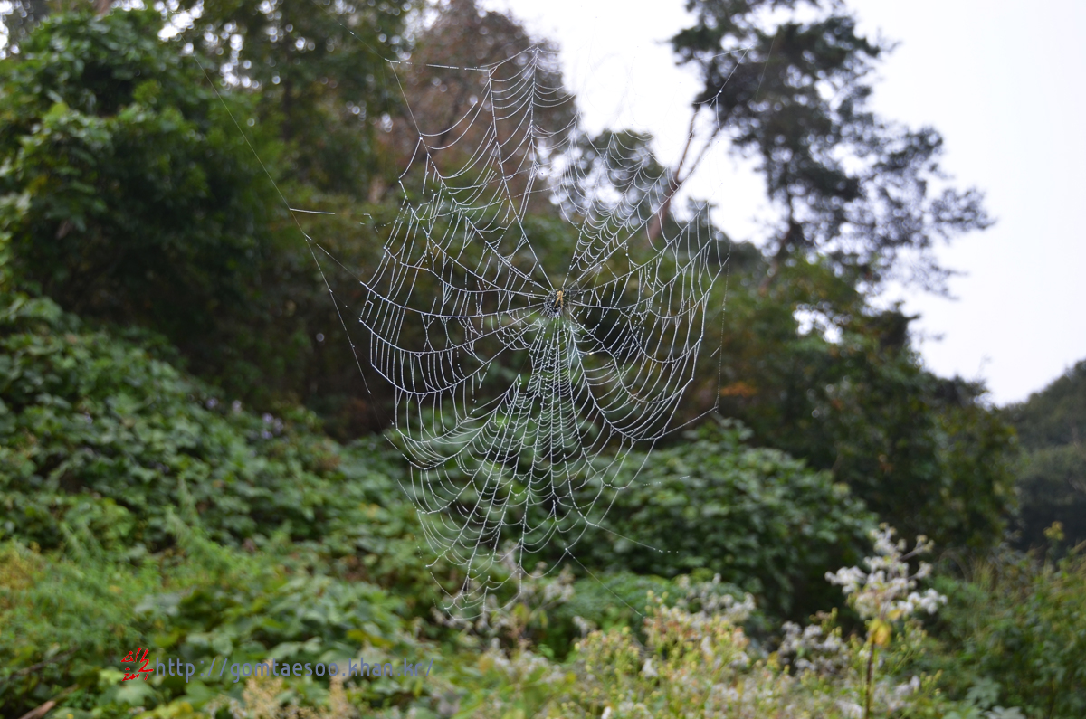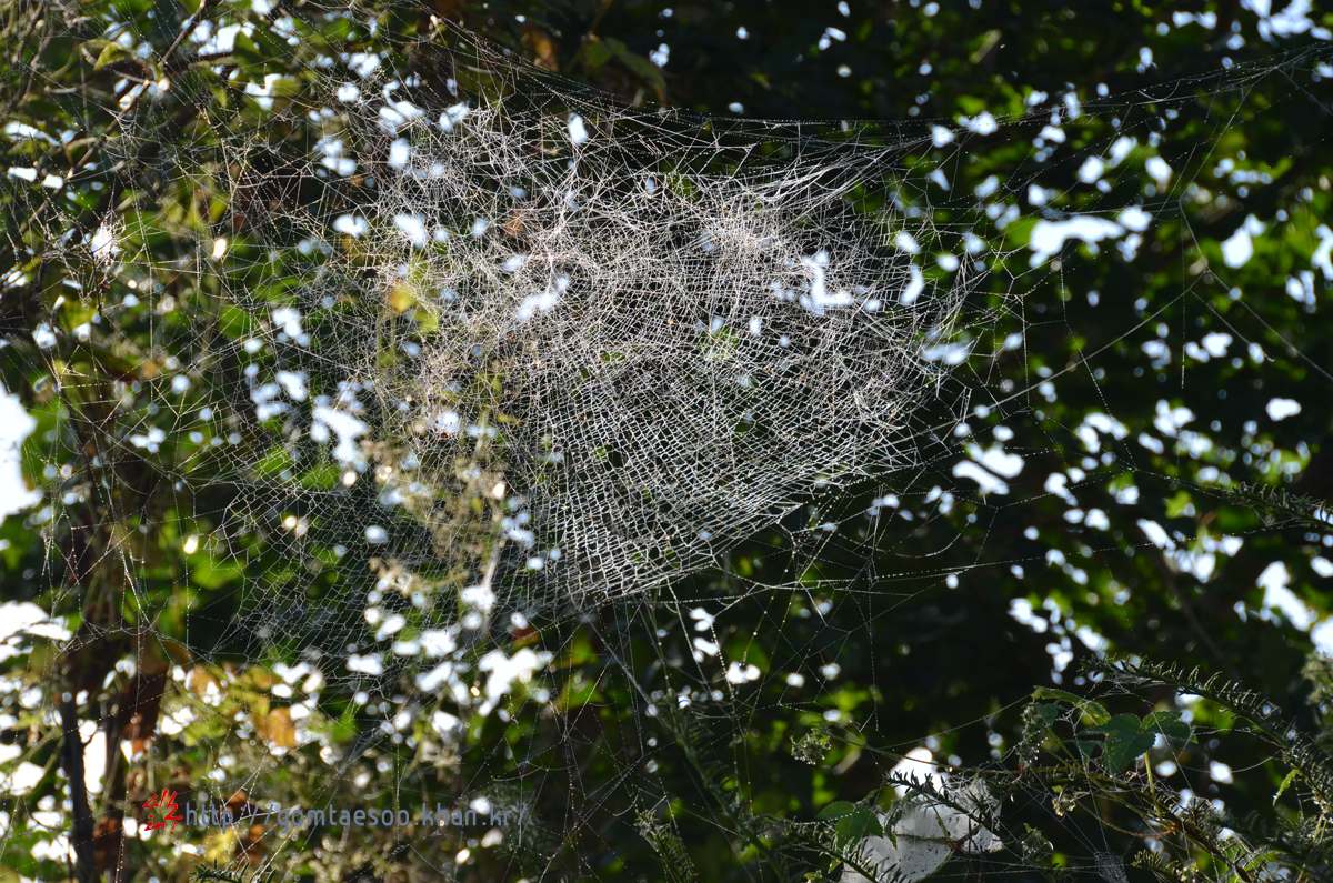 9월 중순에 접어들면서 아침마다 거미그물이 눈에 띤다.