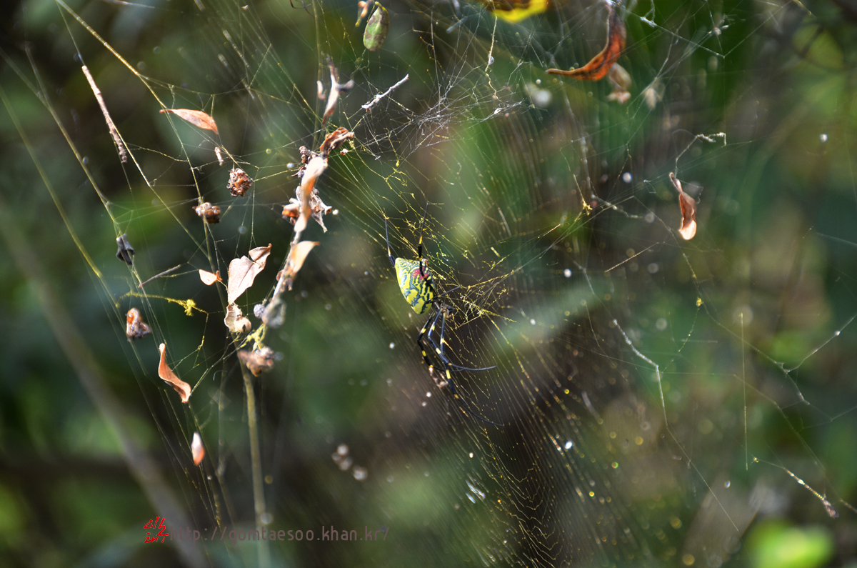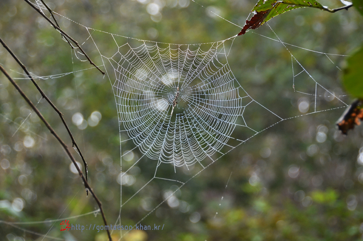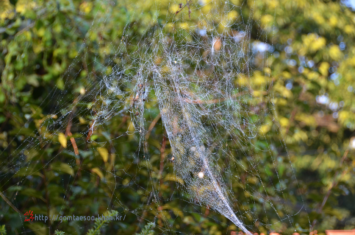 거미그물이 아름다워 들여다볼 때는 거미가 보이지 않았다.