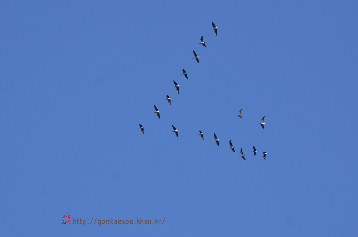 이제는 아침 햇살에 하늘을 나는 쇠기러기가 보인다.