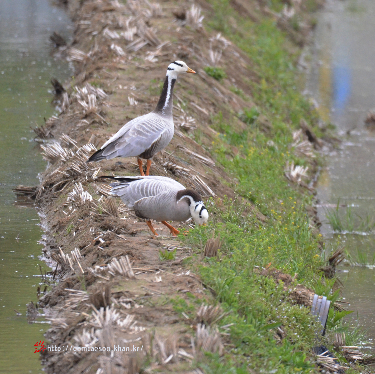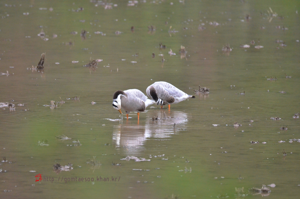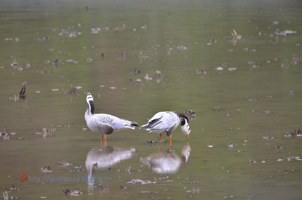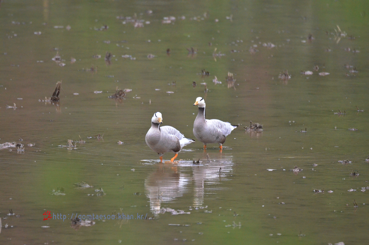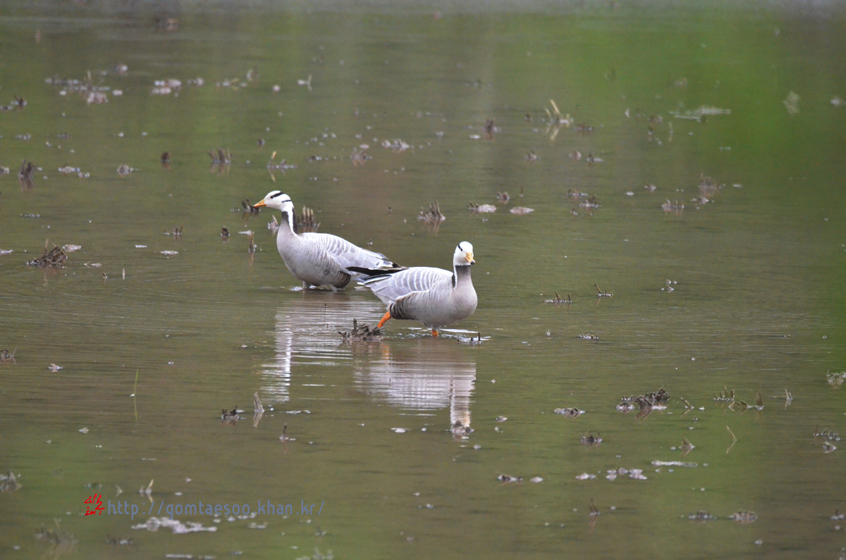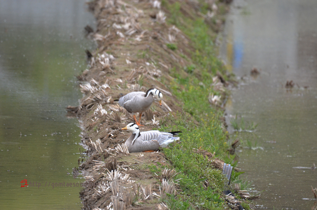 어떤 경로를 거쳐서 인도기러기 2마리가 집 앞 논에 왔는지는 알 수 없다.