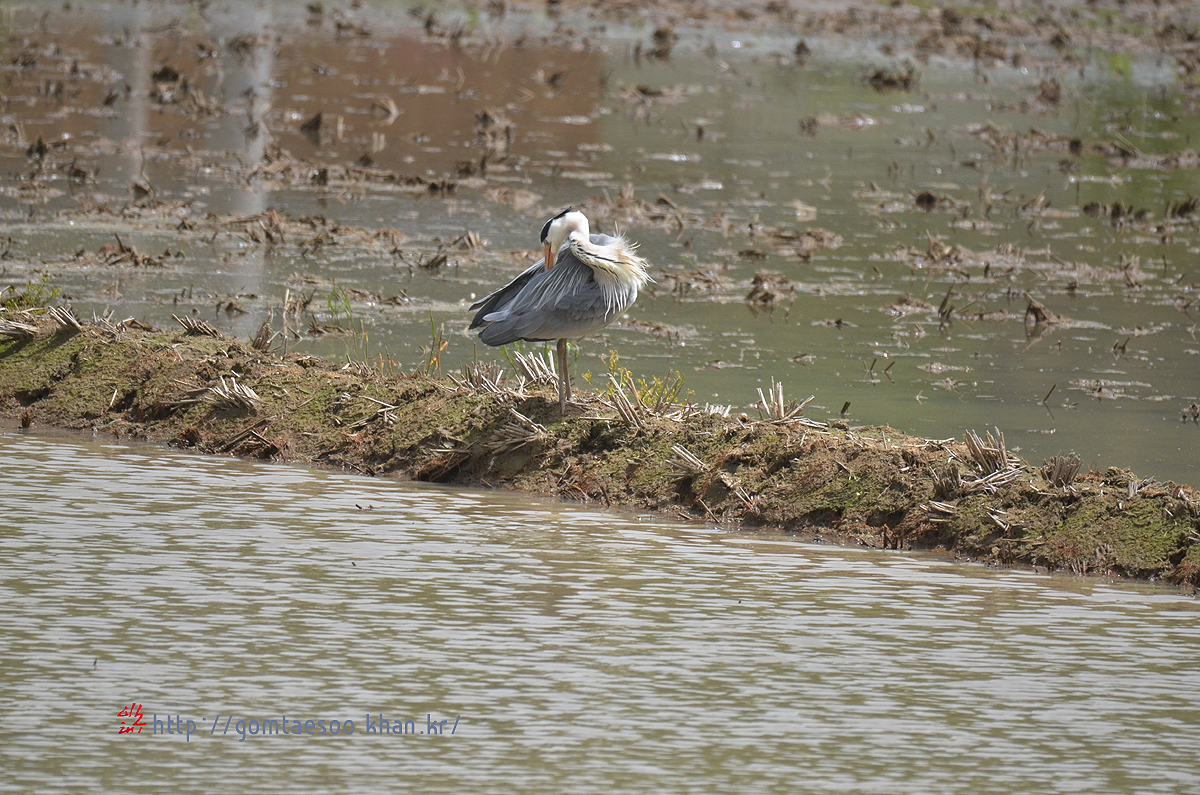 깃털을 다듬는 왜가리