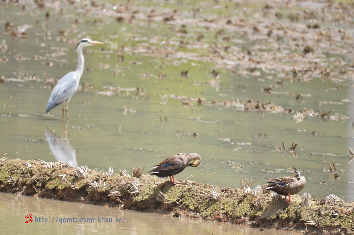 왜가리와 흰뺨검둥오리