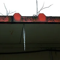 지붕에 쌓인 눈을 자로 재보니 80mm쯤 된다.