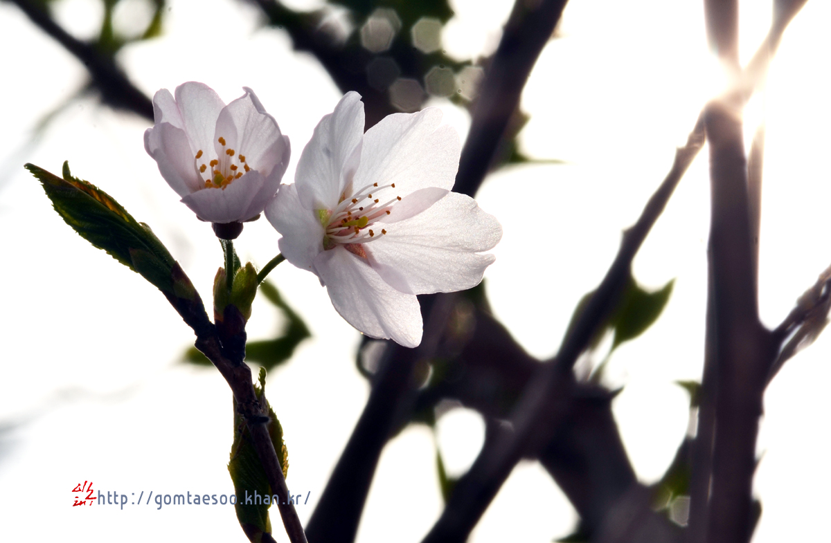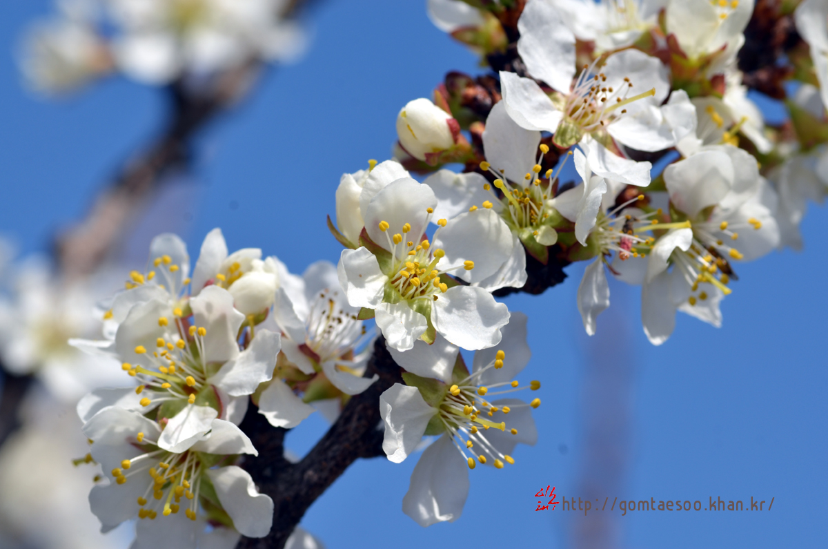 메마른 듯 보이던 살구나무에서 하얀 꽃이 피었다.