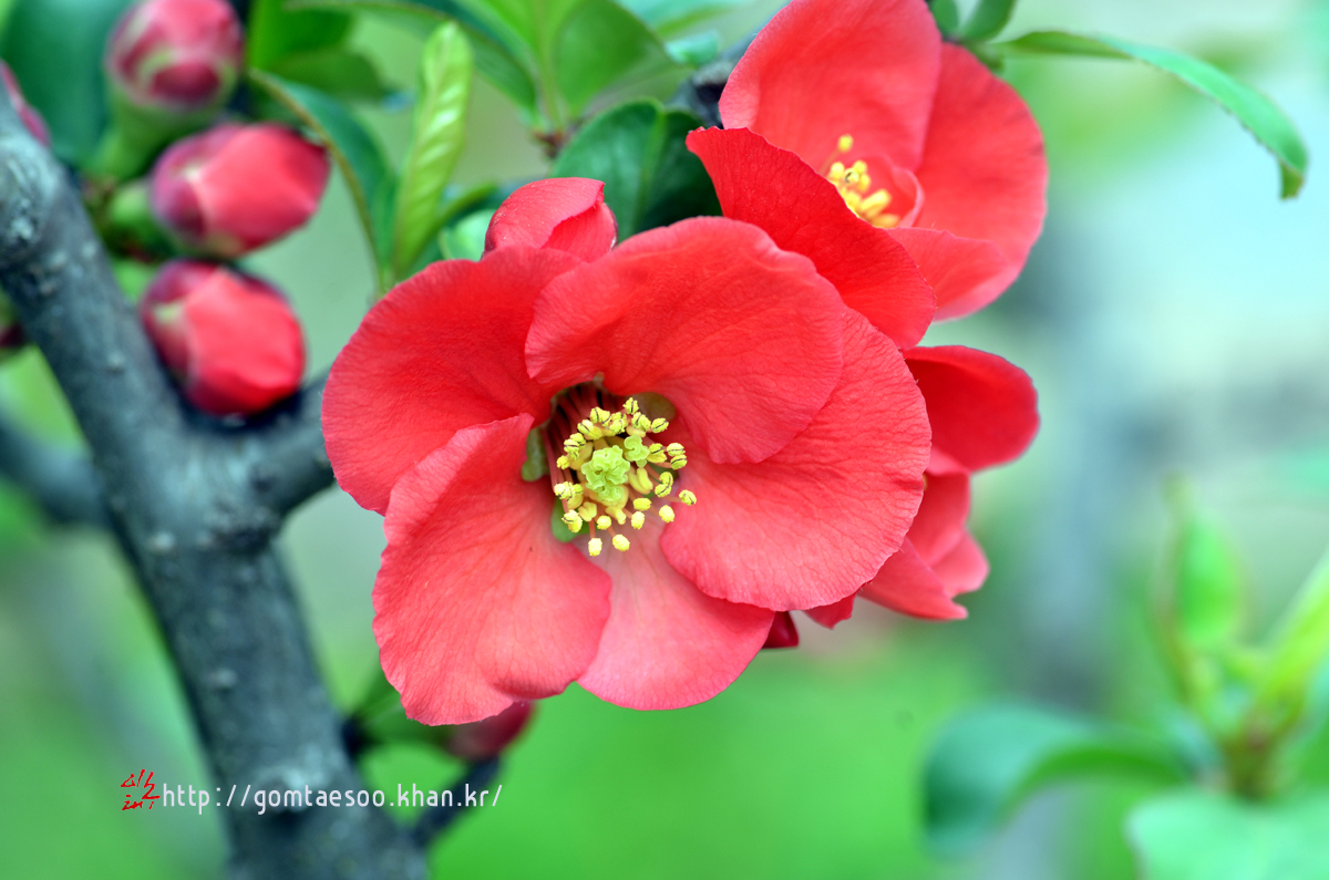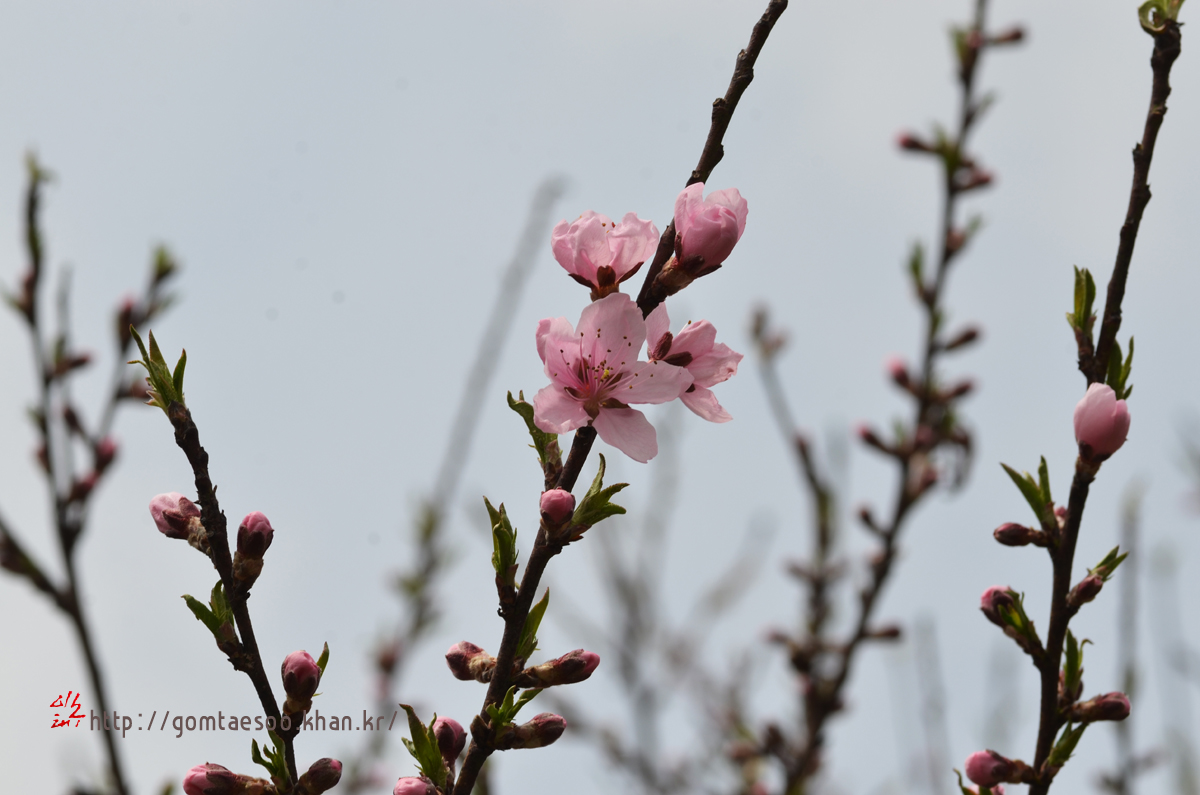 명자나무 꽃이, 개복숭아 꽃이 맑게 피어오르고