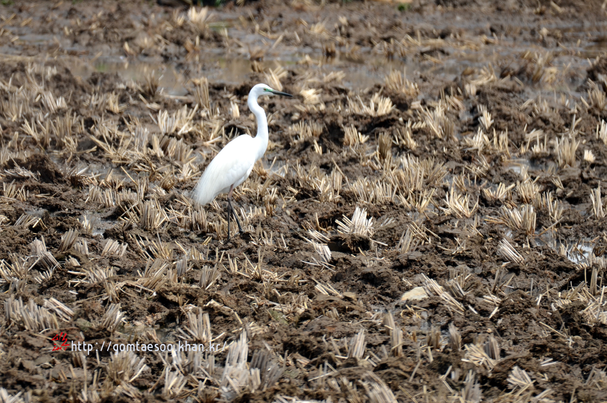 19일, 임진강가에서 보던 백로가 앞 논에 왔다.