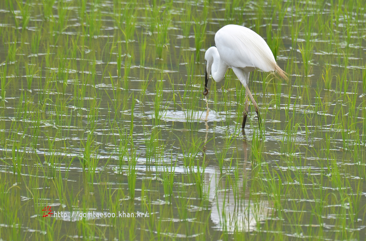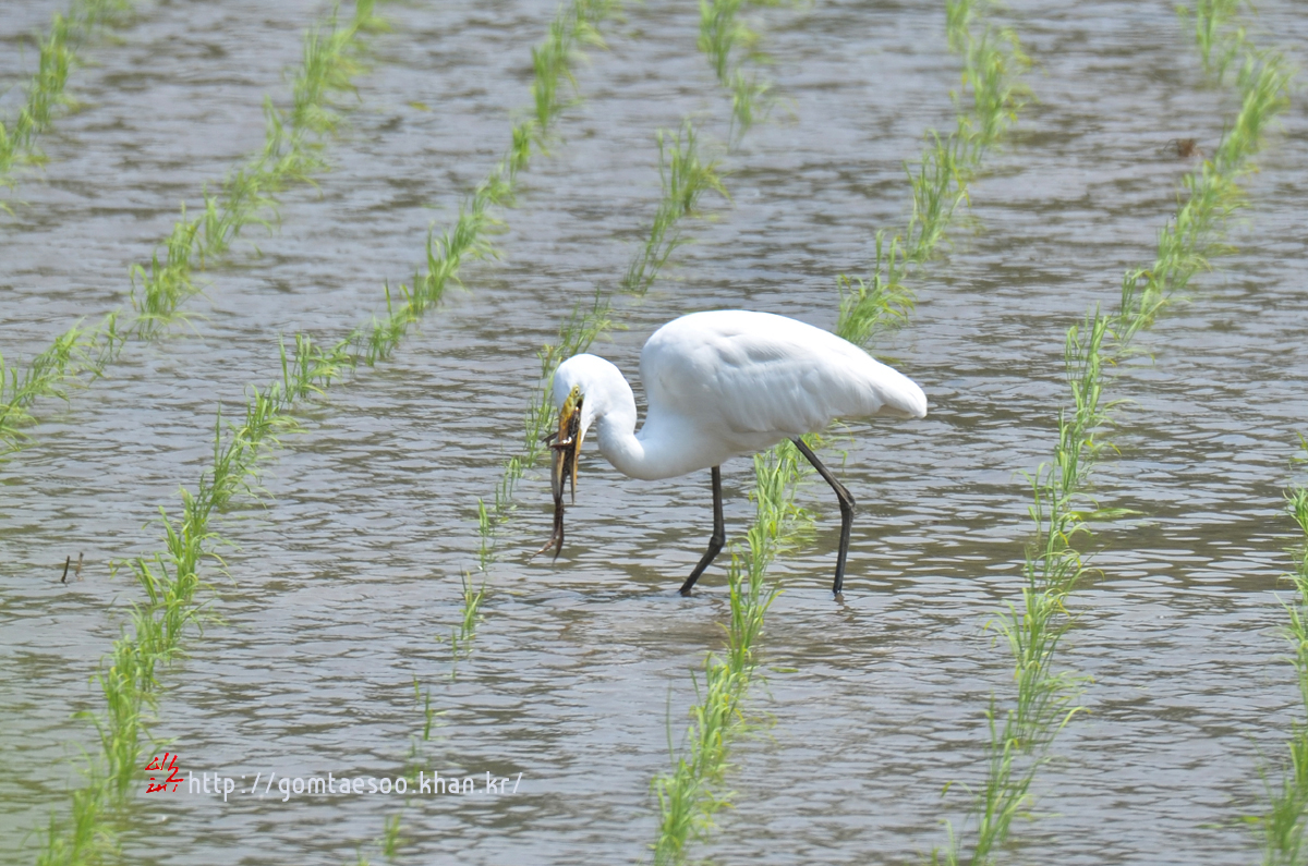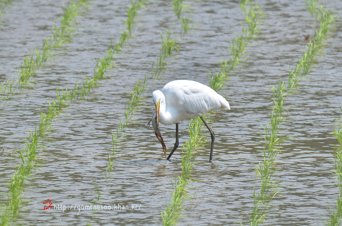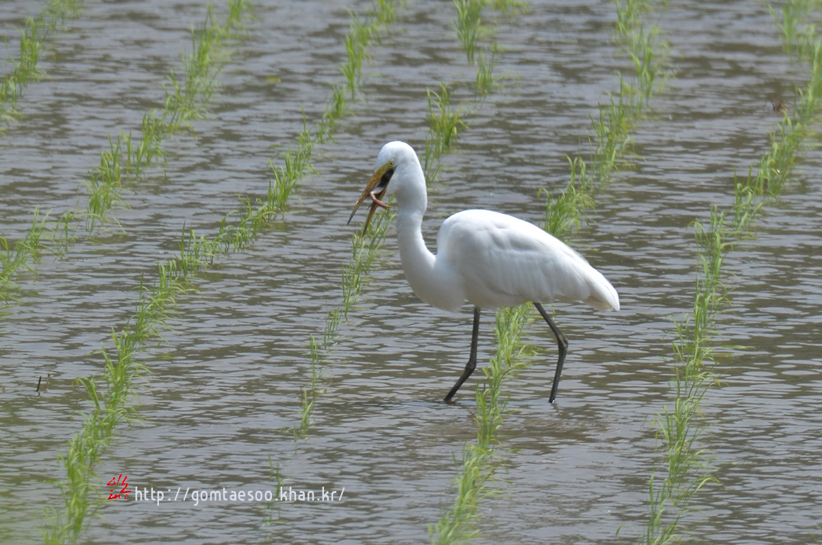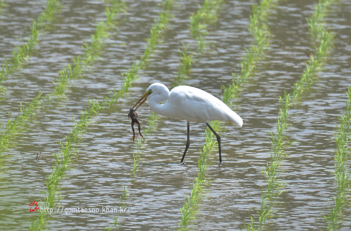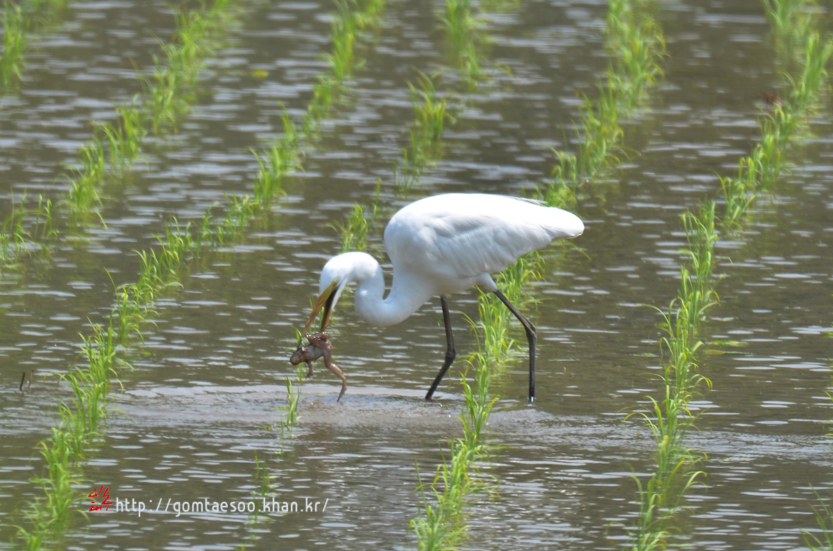중백로 날랜 부리질에 참개구리 잡혔다.