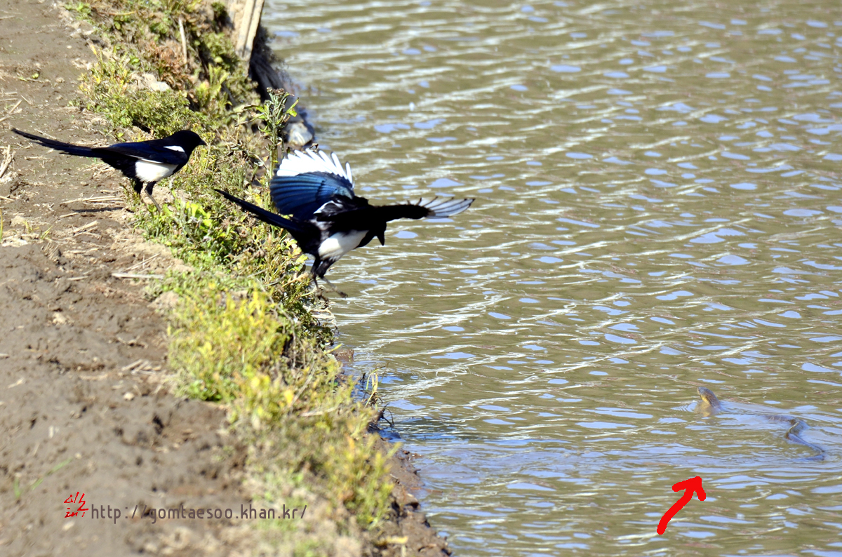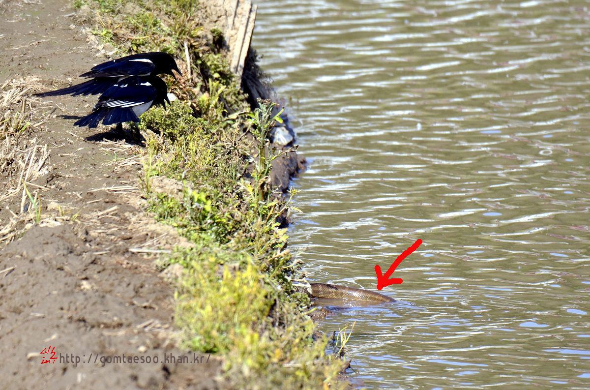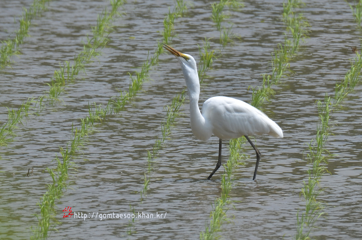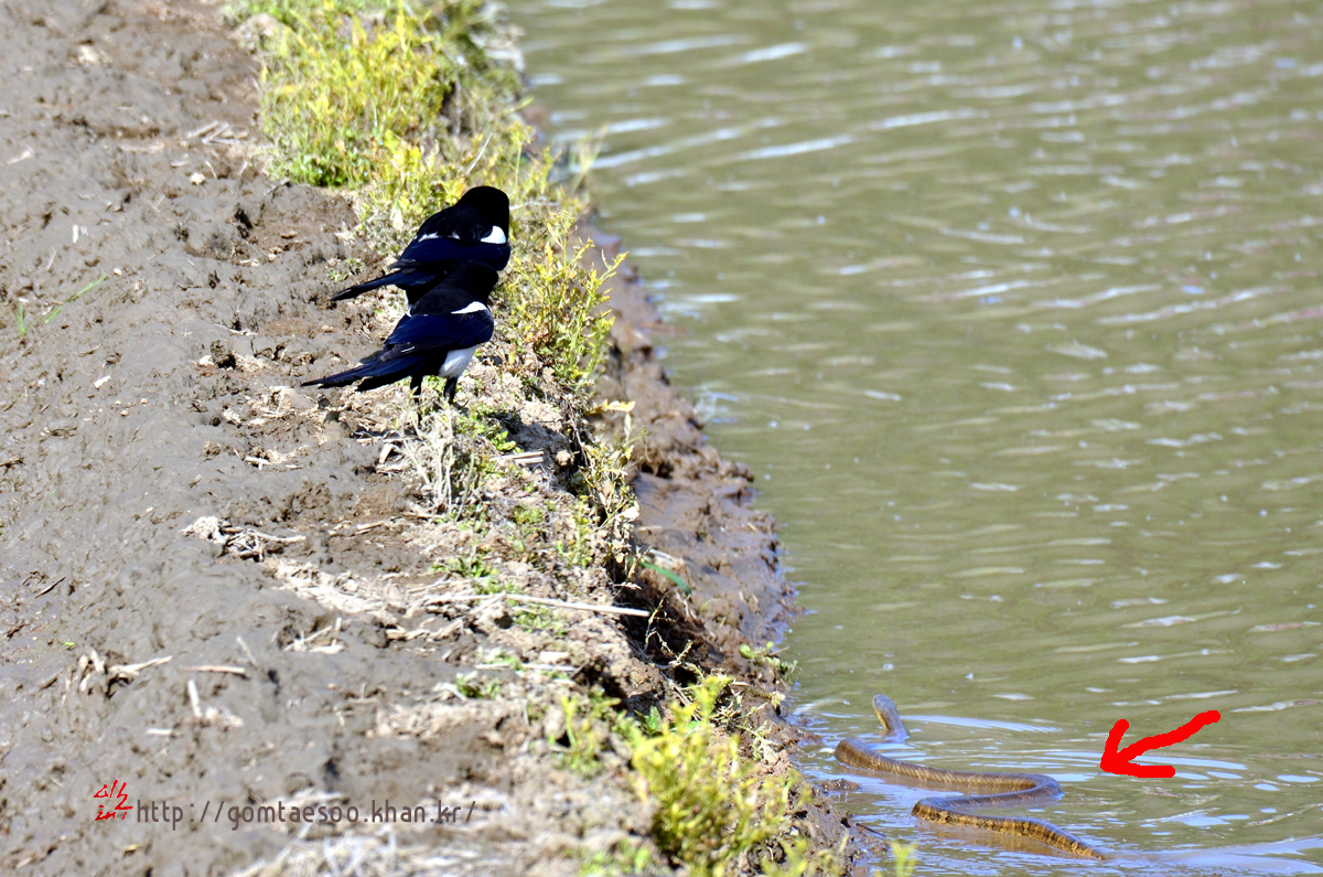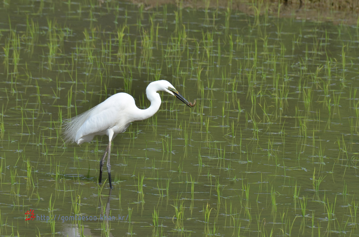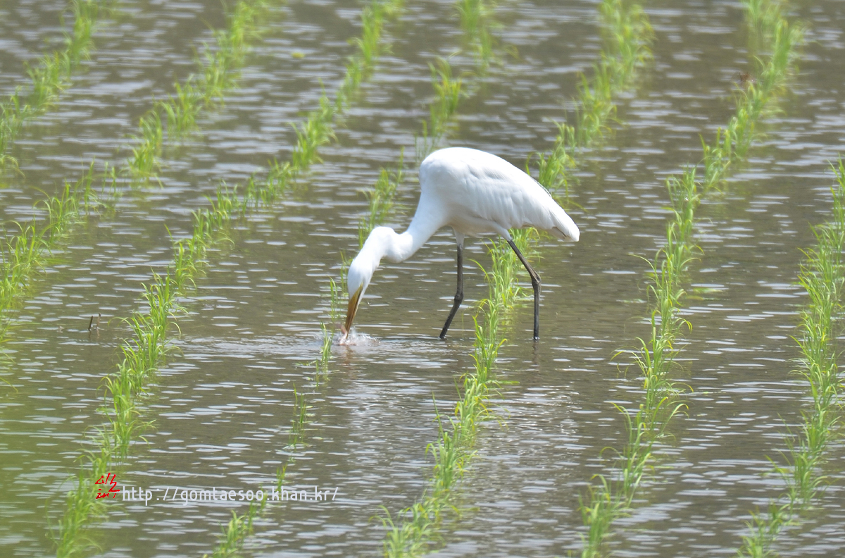 중백로 날랜 부리질에 참개구리 잡혔다.