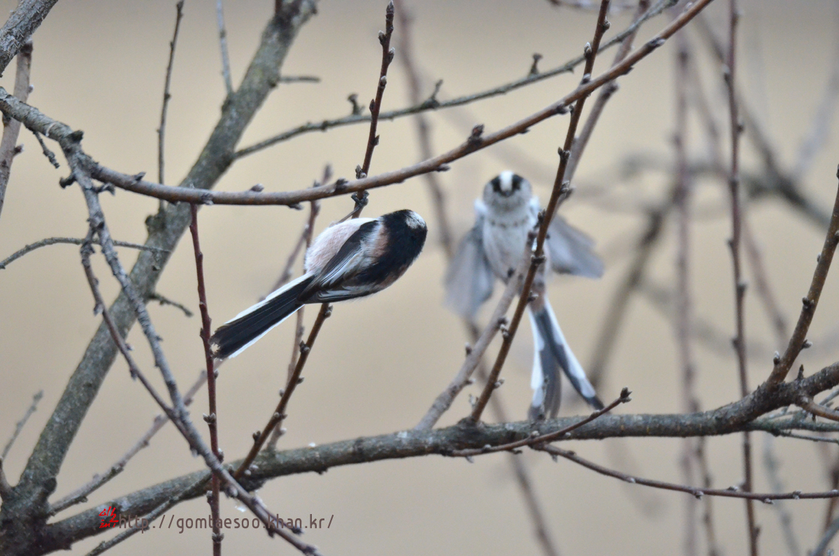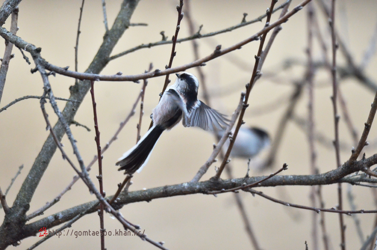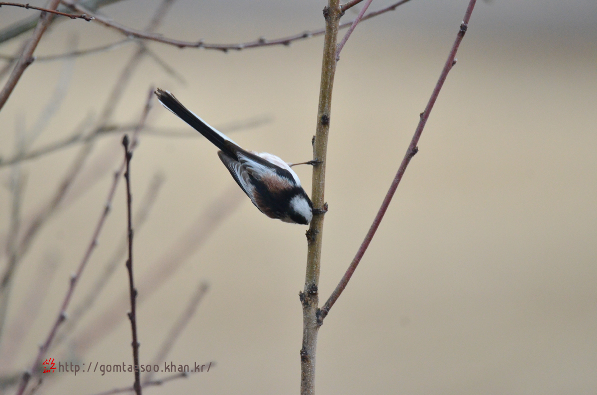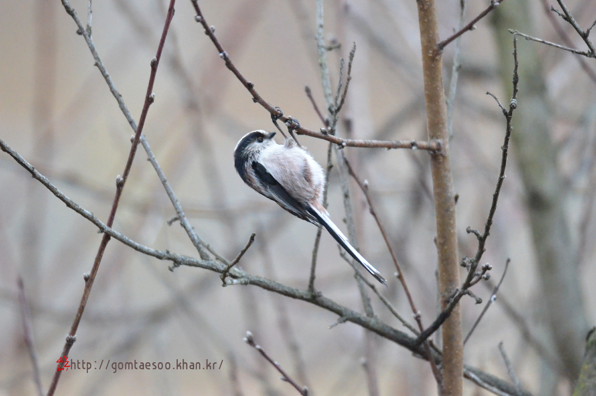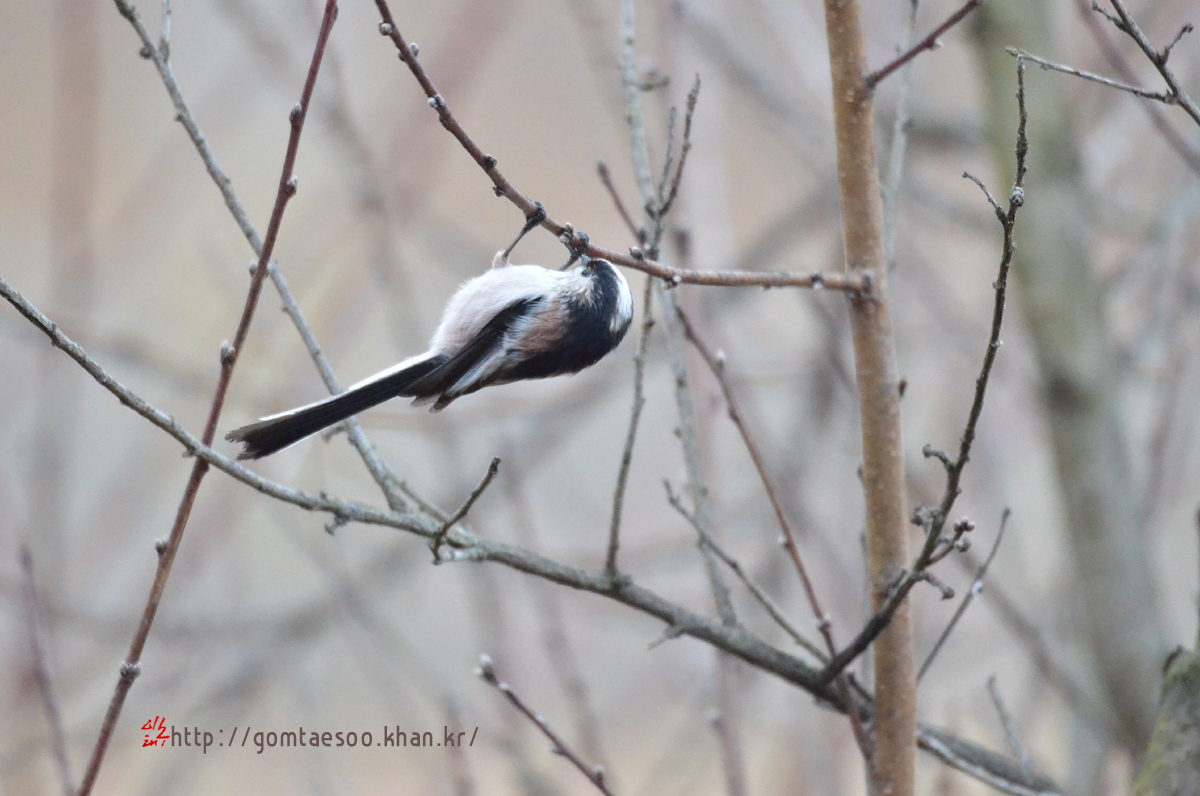 겨울눈 쪼아 먹는 오목눈이