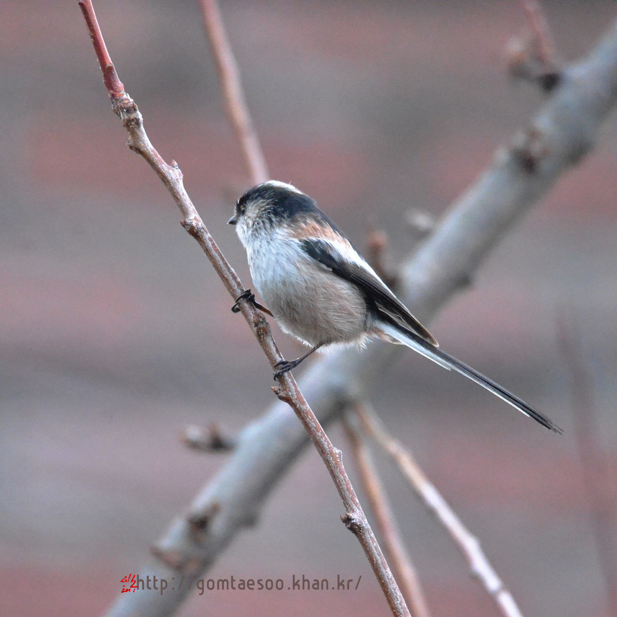 앙증맞은 오목눈이가 개복숭아 나무를 찾았다.